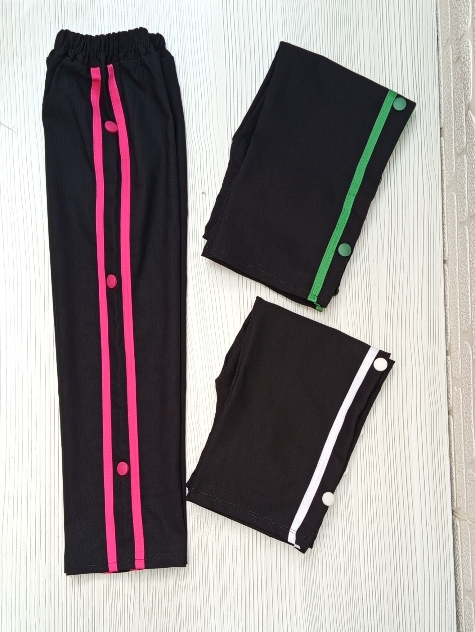 شلوار بغل نوار (دکمه ها پرس میباشد) 🌟 مناسب 6 سال تا حدود 10 سال بستگی به جثه 🌟 رنگبندی مشکی طبق تصویر 🌟 سایز 70. 80. 90 🌟 جنس پارچه بنگال درجه یک 🌟تضمین کیفیت و قیمت